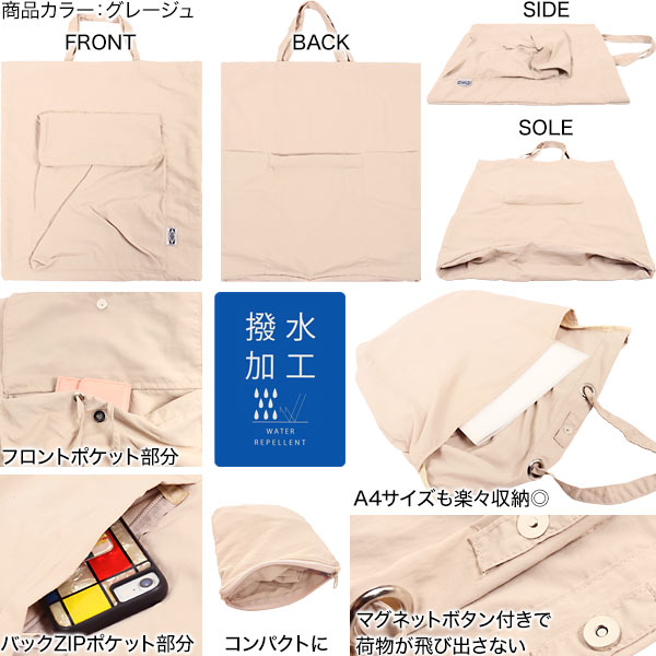 A4サイズもラクラクに入れて頂けるサイズ感で、収納力も◎コンパクトに折り畳めるタイプなので、サブバッグとしても重宝しやすいアイテム。