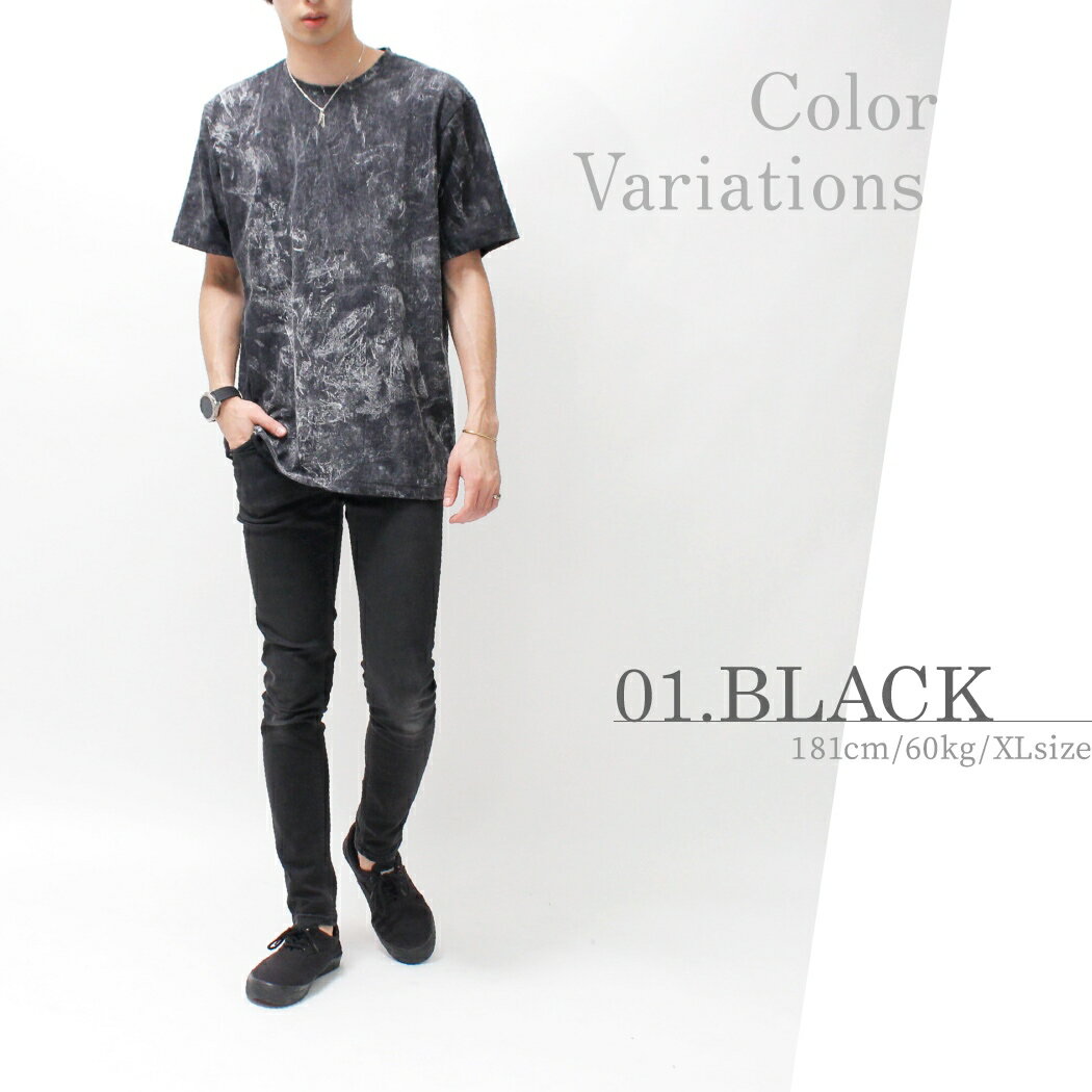 】 総柄で目を惹くストーンウォッシュTシャツ。