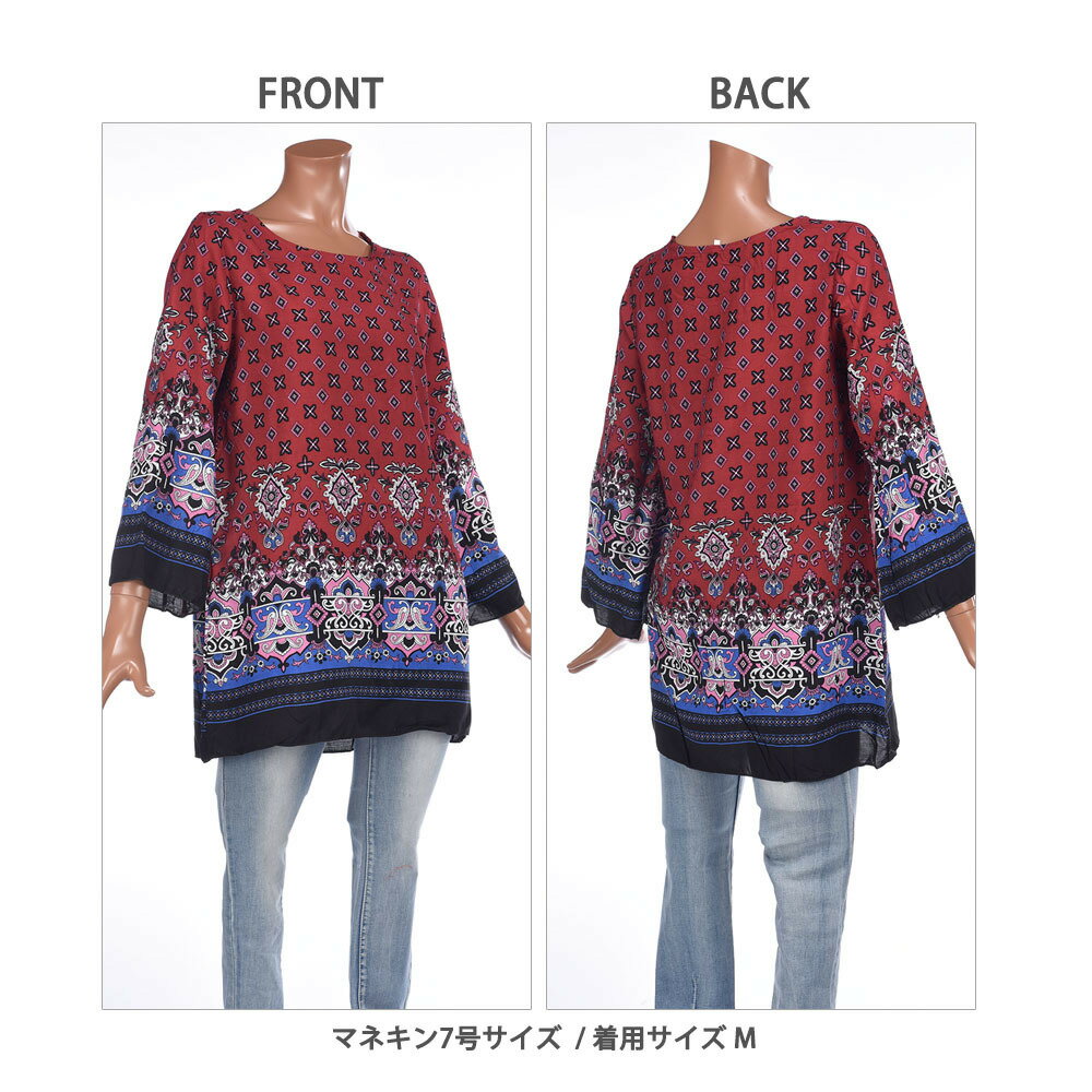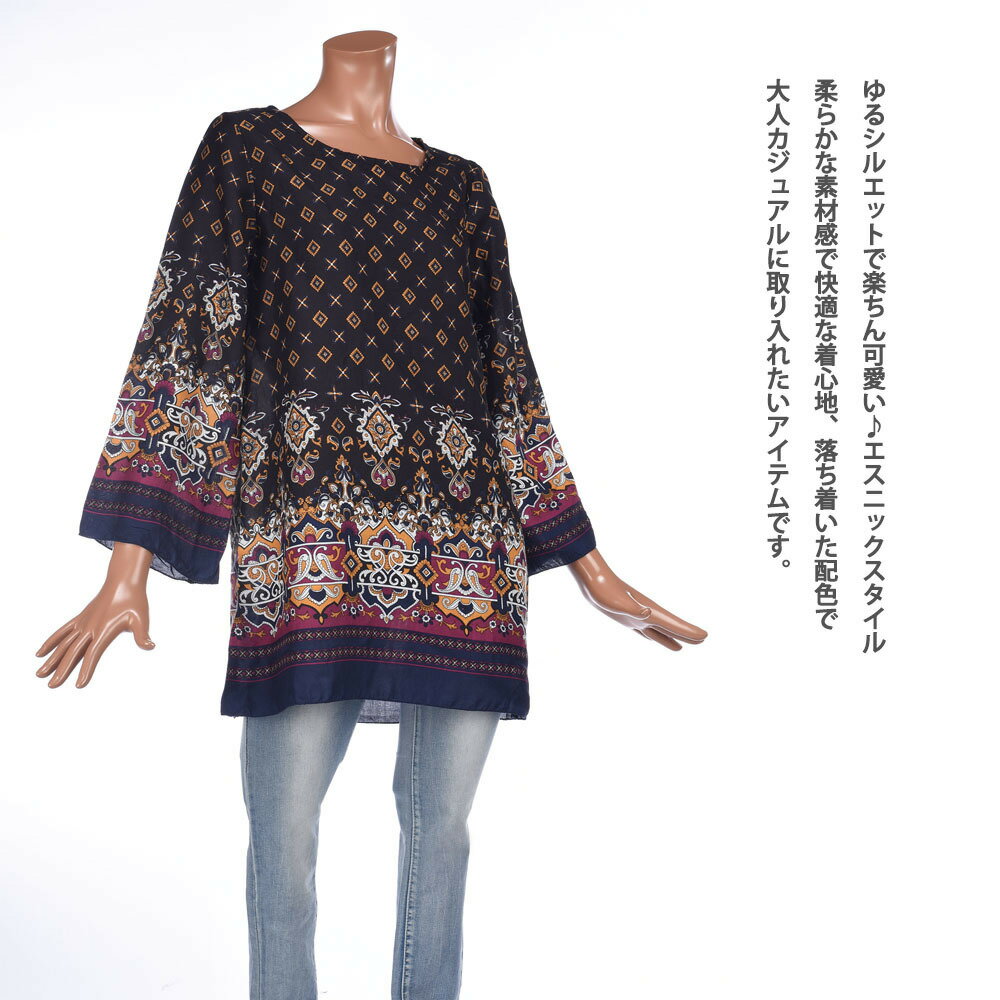 エスニック調のパネルプリントが素敵なチュニックワンピースです。