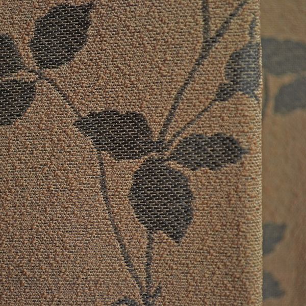 Brownブラウンブラウンとブラックの糸を織り交ぜて作ったベース生地に、横糸だけで織り上げたブラックの模様が美しい。