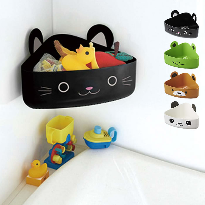 キッズ バスラック おもちゃ入れ お風呂 浴室 収納 コーナーラック 吸盤 壁掛け カビ防止 かわいい こども ネコ カエル クマ パンダ ブラック グリーン ブラウン ホワイト 3469 2637 2638 2639 山崎実業 yamazaki